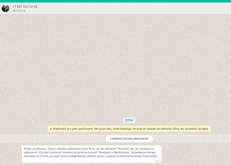 jasiek-morze Opublikowano 20 Kwietnia 2021 Zgłoś Udostępnij Opublikowano 20 Kwietnia 2021 Typ z Bełchatowa też pisał do mnie. Numer kilkunasto cyfrowy. Jakiś boot czy coś, w ogłoszeniu dałem tylko odbiór osobisty. Cytuj Odnośnik do komentarza Udostępnij na innych stronach Więcej opcji udostępniania...