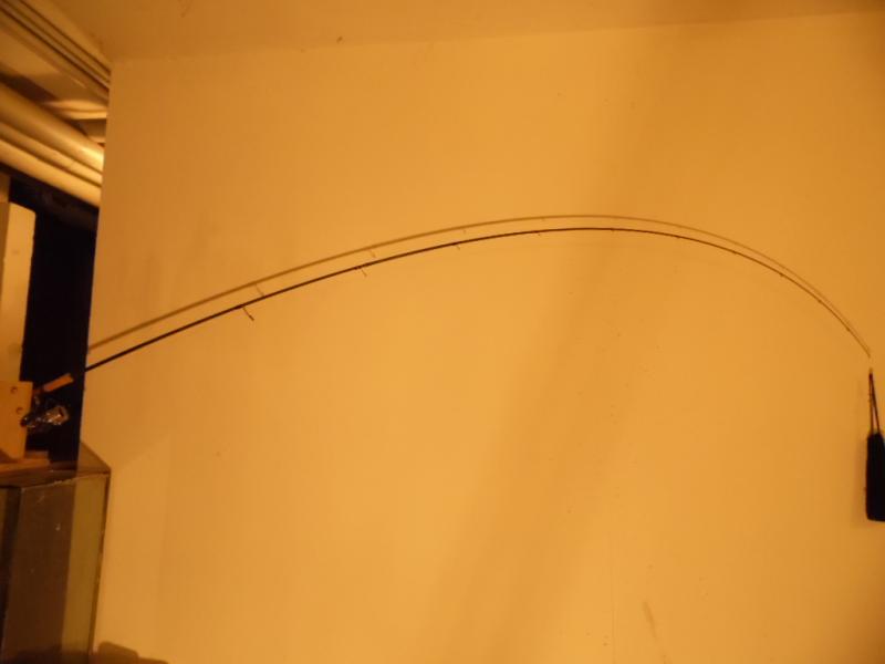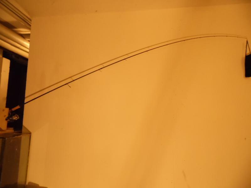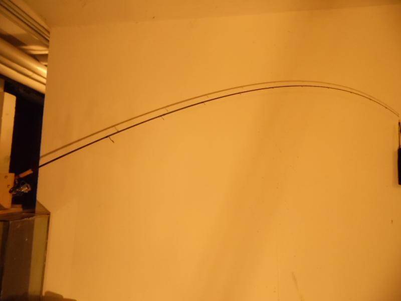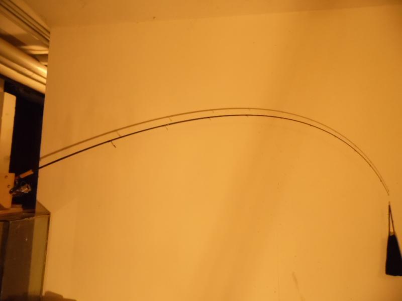 Po moim poście zacząłem się zastanawiać nad ugięciem i może to kolega @krab ma rację a nie ja ,więc będąc obiektywnym forumowiczem postanowiłem na szybko sprawdzić ugięcie kija .W tym celu poszedłem do piwnicy ,zamocowałem wędkę w uchwycie oraz aparat w statywie i dokładając do woreczka obciążniki 100 g robiłem foty .Możecie panowie sami wyrobić sobie zdanie o ugięciu i amortyzacji Phenixa 982 MH