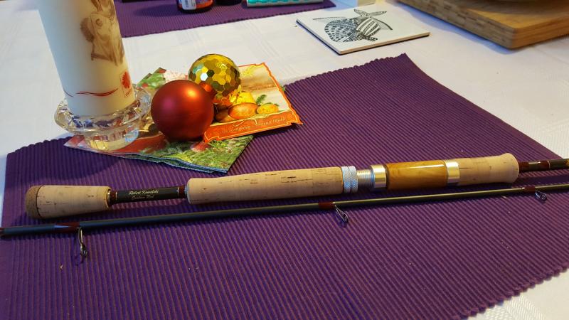 Dzisiaj trociówka to jeszcze jest na karuzeli :) ale jutro będzie już suchutka .Nie chciałbym być źle zrozumiany ale dlatego tak napisałem "niesamowita disajnerska torpeda " że nie mogę się już doczekać połowów tym kijem .Rzucałem już wędką kolegi na tym blanku  i ciśnienie poszło do góry ,po prostu leży w łapie niesamowicie a rzuty są na prawdę dalekie i dlatego włożyłem w ten kij sporo serducha i mam do niego stosunek troszkę inny niż do kolejnego następnego . Kij mi się podoba ,bo jest prosto wykonany ,bez fajerwerków i wodotrysków ale ma to coś ,co ciężko opisać . @Jozi mawia że "kij ma duszę " i chyba może mieć rację .Oczywiście dla wielu będzie to kolejny następny z tego typu a wielu na pewno będzie się nie podobał, ale dla mnie jest ważne że mnie "leży" i się podoba a na jego widok podnosi się ciśnienie i pojawiają się marzenia o holu sporej troci :) , więc do jutra .
