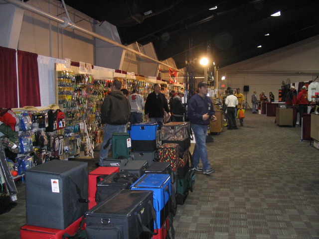 Polnocna Ameryka trapiona jest mrozem , sniegiem , wiatrem . Byly dni ze wydawalo sie ze juz koniec zimy a tu ona jeszcze zajadlej atakuje . Trzy tygodnie temu wybralem sie na Busse Lake i zastalem calkowicie jeziorko pokryte lodem . Swierzy snieg przykryl wszystkie dziury wedkarskie [jezeli takowe byly ?]. Tydzien temu pojechalem obejrzec Michigen od Zat. Montrose . Pelno duzej kry nieomal calkowicie blokujacej zatoke . Dwoch wedkarzy podlodowych twardo lowi przy molo , trzyma tam mocny lod . W ten weekend aby nie siedziec w domu postanowilem pojechac do St Charles . Na obrzerzach tego starego miasteczka odbywa sie juz jedna z ostatnich wystaw wedkarskich jakie niosa zimowe programy . Ta wystawa ma w nazwie muskie i jemu jest poswiecona . Wsiadajac rano do samochodu , czekajac az sie zagrzeje , slysze komunikat ze Adas Malysz zdobyl zloty medal . Pieknie sie zaczyna dzien ...bedzie dobrze i bylo... . Na te wystawe nie jechalem bez powodu . Tym powodem byla chec obejrzenia nowo zaprojektowanych pieciu wedek firmy St Croix na muskie , w serii Legend . Od kiedy sie o nich dowiedzialem posiadanie przynajmniej jednej zdominowalo moje mysli . Moj wybor padl na najdelikatniejszy model dlugosci 7,3 stopy , przeznaczonej na wirowy i mniejsze wabiki[