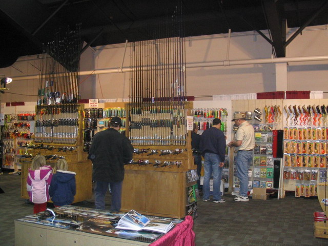 ]. Wystawa zgromadzila liczac na moje oko o polowe mniej wystawcow niz wystawa ktora co rocznie odwiedzam w styczniu w Rosell. Byla bardziej kameralna , mniej tloczna i sprzyjala ogladaniu i rozmowom . Najwieksze stanowisko mial sklep Rollie&Helen,s . Wlasnie u nich spodziewalem sie tych wedek , wiedzialem ze maja je w ofercie . Niebieski kolor zobaczylem z daleka . Po ogladnieciu wszystkich wybralem model na ktory juz wczesniej sie zdecydowalem [na zdieciu sa jego parametry]. Dopiero paradujac z moja Legenda spokojnie zaczalem sobie ogladac reszte wystawcow . W ofercie wyzej wymienionego sklepu jest Salmo w duzym wyborze . Poniewaz na wedke wydalem lekko ponad 300$ wiec dalem sobie spokoj z zakupami . Na stanowisku Musky Hunter Magazine przywitalem sie z Jimem Saric , ktory juz mnie pamieta z wypiekow na twarzy i klatwy angielskiego