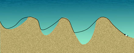 Mnie w takich miejscach sprawdza się mój patent, główka ze sterem. Idzie jak przyklejona do dna. Trzeba tylko zrobić sobie różne warianty na różne głębokości. Główka bez steru jest mało „inteligentna”, nie reaguje na zmianę głębokości. Rys. 1 pokazuje feler tradycyjnej główki.