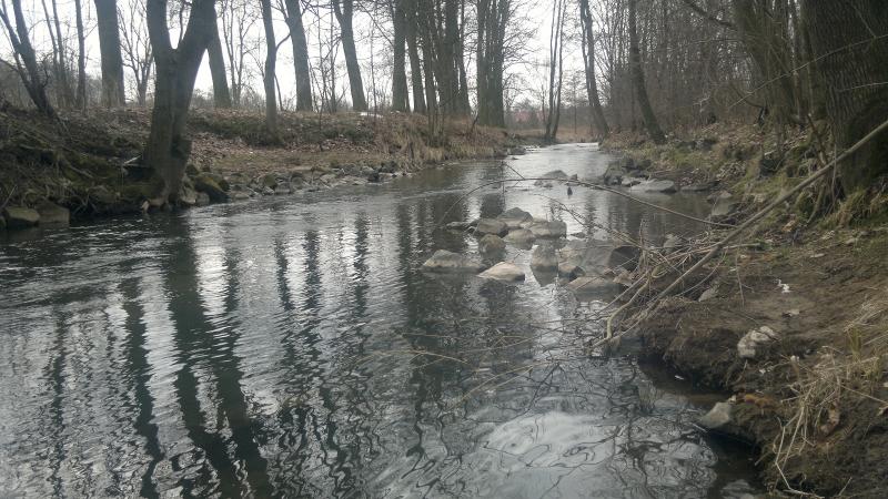 Jeśli nie spróbujesz, nie przekonasz się. Na mój gust ma potencjał, przynamniej ze szczupakiem i okoniem, a dalej z kleniem i jaziem nie powinno być wiekszego problemu, byle owo zanieczyszczenie nie było skrajnie duże. W płytkich i najpłytszych siurkach łowienie pasiastych i kaczorów jest względnie łatwe, każdy dołek, zakręt, zacienienie - zwłaszcza, kiedny na danym odcinku urozmajceń jest niewiele - będzie przynosiło ryby. Obławiamy zawsze te połacie wody, w których nie widać dna... Głównie polecam paprochy na 2-3g. Wyniki mogą przejść najśmielsze oczekiwania. W poście z 10 X zaprezentowałem moją kameralną wodę - przed złowieniem 30-taka z foty miałem odprowadzenie w tym samym miejscu dwóch garbusów ~40 cm... Oczywiście, zwykle krzątanie się wzdłuż tego typu rzeczek  mija się z celem w ostrej zimie, zwłaszcza w wypadku, gdy ujście znajduje się niedaleko, lecz i te doświadczenia będę na początku roku weryfikował, tylko naprzód musiałyby nastać mrozy, acz lepiej by sobie dały na wstrzymanie...   :D