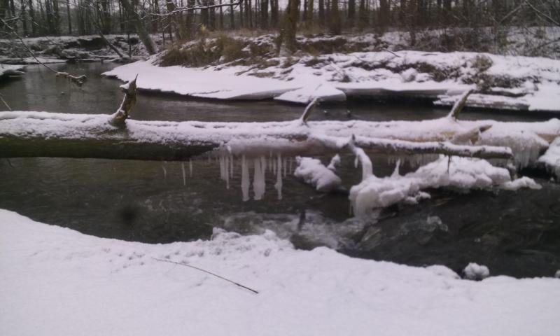 Dziś pierwszy raz w tym sezonie miałem okazję połowić tak, jak lubię najbardziej, ledwie dwie godzinki, ale zawsze to coś. Udało mi się nawet wyjąć pstrążka może z dwa razy większego niż wobler ze zdjęcia. Widziałem też koleżkę, który zostawił ten trop, ale nie dał się sfotografować, a szkoda, bo był to naprawdę spory basior. Ogólnie bardzo miłe przedpołudnie  :)!
