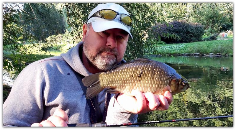 Wbrew protestom małżonki pojechałem na rybki. Udało mi  się na muszkę złowić nie tylko jazia ale i karasia i to całkiem sporego