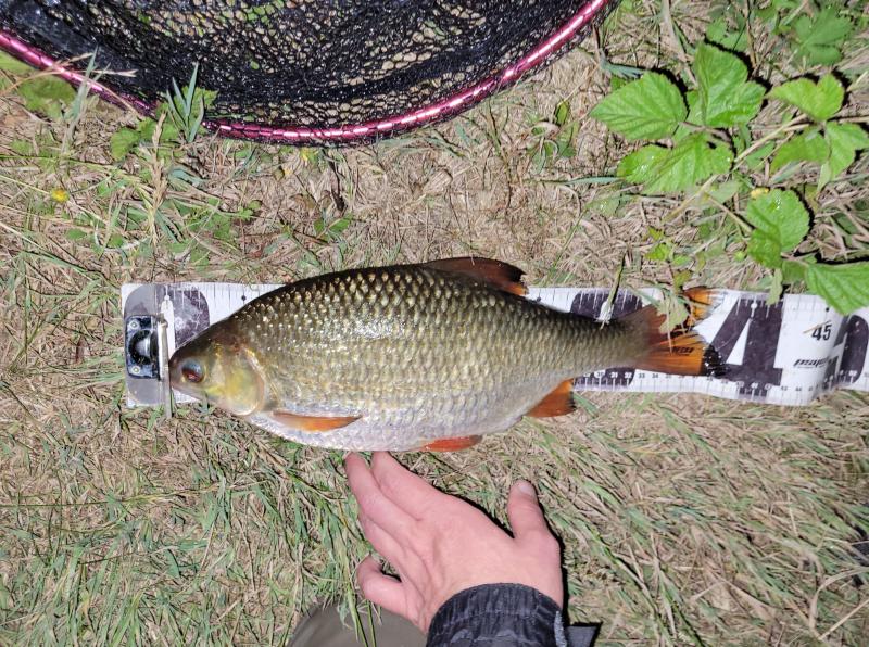 Wczoraj szybki wypad na nocnego klenia. 20:30 - 23:00. Dużo brań, praktycznie przy każdym rzucie ale były to albo nieśmiałe puknięcia albo nie mogłem tego zaciąć. Na końcówce łowienia trafiła się bardzo ładna spinningowa płoć - głodna po tarle. Szkoda, że tak wiało bo bym ich z premedytacją poszukał. Tym razem królował siek bzyk.