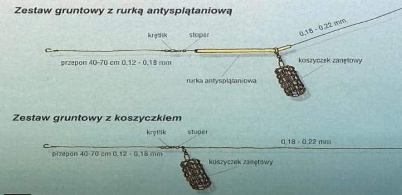DominikBP Opublikowano 22 Kwietnia 2022 Zgłoś Udostępnij Opublikowano 22 Kwietnia 2022 Montaż zestawu jest w miarę prosty, w pierwszej kolejności rurka anty splontaniowa (bo mówiłeś że nie chcesz się doktoryzować, to skrętki odłóż na później) poźniej stoperek dla ochrony węzła, krętlik i do kretlika przypon długość od 30 do nawet metra, wielkość haczyka zależy od przynęty.Ewentualnie prościej i z możliwością złapania większej rybki ale nie dopuszczeniem drobnicy można zamontować method feder, czyli koszyk, później krętlik i od krętlika krótki do 10 cm przypon tylko tu na hak wypadałoby jakiś pelet 6 lub 8 mm założyć w sumie to nie na hak a na włos. Do koszyka też pellet jakiś drobny. Są filmiki na YT.Na metodę gruntową rzucanie w jedno miejsce bym polecał i do nęcenie do tego ręcznie. Zwykłe zanęty sklepowe z kuku i robalami np.A jeżeli nie metoda gruntowa to bacik 6,7 m i płoteczki Jeżeli komercja to polecałbym metodę i jaki pellet. Cytuj Odnośnik do komentarza Udostępnij na innych stronach Więcej opcji udostępniania...