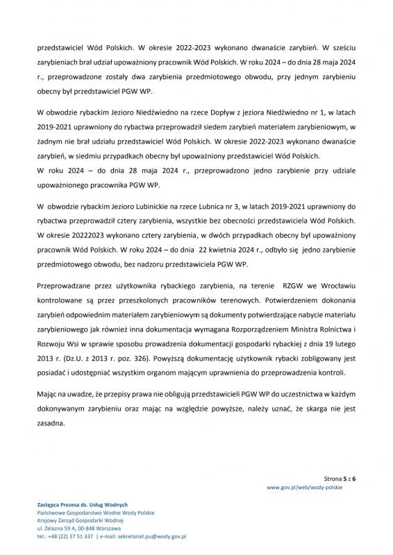 hardy50 Opublikowano 31 Lipca 2024 Zgłoś Udostępnij Opublikowano 31 Lipca 2024 W skrócie dostałem odpowiedź na skargę. Przy 11 zarybieniach w lata 2019 - 2021 był tylko raz przedstawiciel wod polskich potem byli już częściej a w 2024 przy kazdym. Oczywiście skarblga uznana za bezzasadna. Im więcej pism tym więcej kontroli i szans na prawdziwa gospodarke a nie niszczenie wody. Cytuj Odnośnik do komentarza Udostępnij na innych stronach Więcej opcji udostępniania...