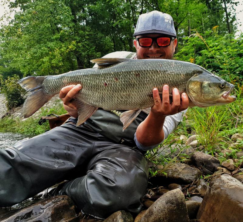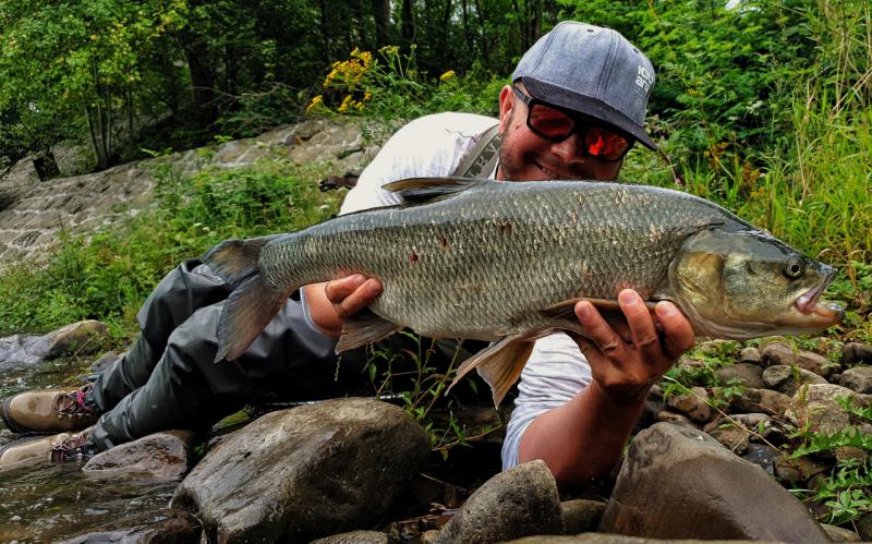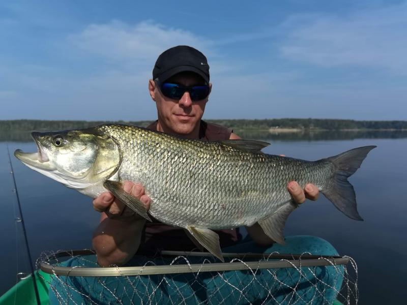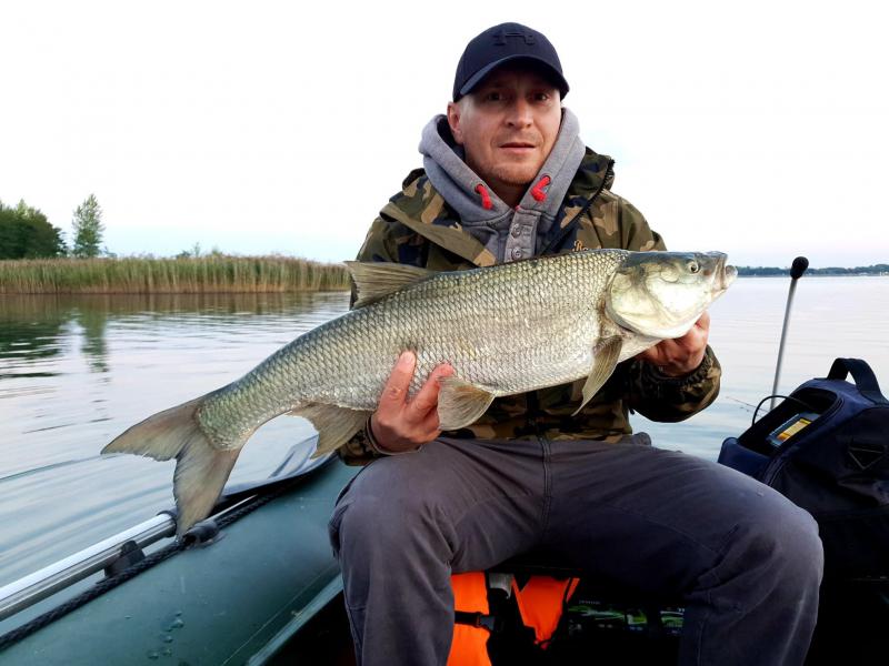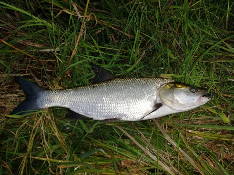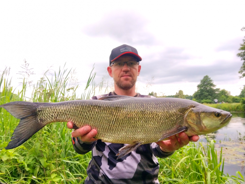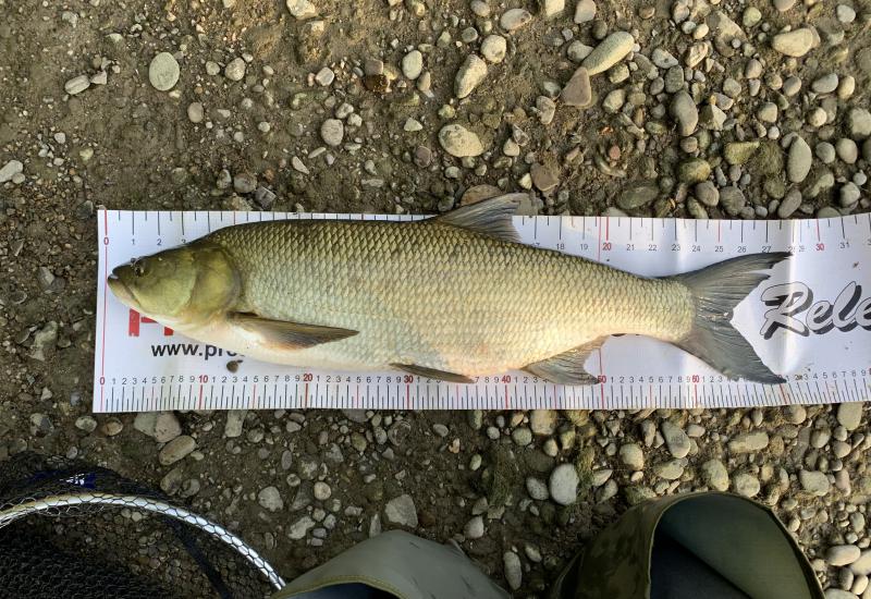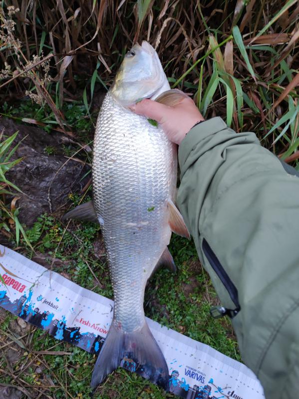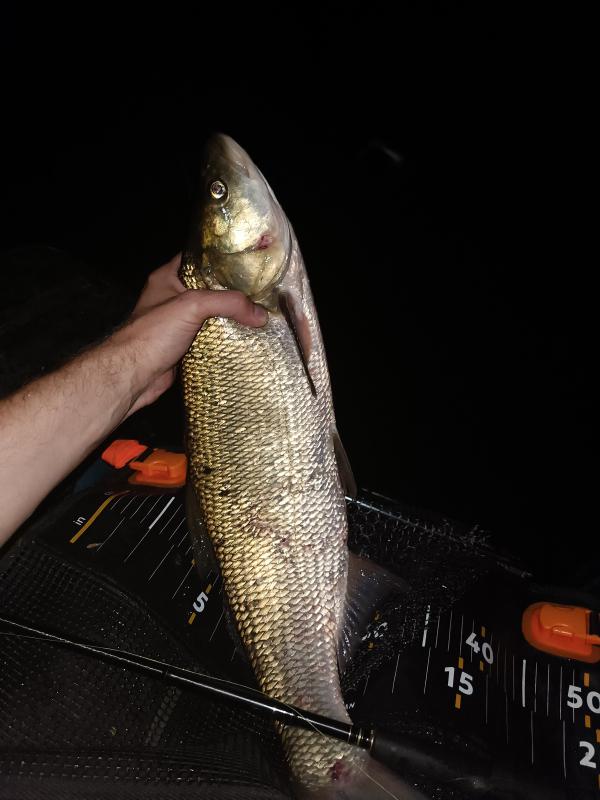 Niestety to już moje zakończenie sezonu wędkarskiego w tym roku, także korzystam póki mogę. Bardzo fajna sytuacja gdyż po pierwszym paru rzutach w okolice spokojnej wody zaraz za szybkim wlewem poczułem dosyć delikatne branie, pare trzepnięć i czuje luz na kiju tym samym widząc jak ryba w graniach 70 cm wyskakuje w całości nad powierzchnię wody. Pomyślałem, że szkoda bo fajnie było by mieć taką rybę na kiju. Nieco zrezygnowany, stwierdziłem że skoro się ukuł to już raczej po zawodach. Na całe szczęście oddałem kontrolnie jeszcze pare rzutów i dokładnie w tym samym miejscu mam znowu branie. Tym razem zdecydowanie mocniejsze i ewidentne trafione tak jak trzeba. Po dosyć szybkim holu, ryba wyładowała w podbieraku. Gabarytowo takiej ryby z rzeki jeszcze nie wyjąłem. Pięknie objedzona i masywna ryba. Darowałem sobie sesje zdjęciową przed obiektywem aparatu, ponieważ z racji wysokiej temperatury wody wiem, że ryby nie najlepiej znoszą walkę, a zależało mi na tym żeby przeżył. Ryba skusiła się na wobka 9cm chodzącego drobno po powierzchni mojej produkcji. Pozdrawiam wszystkich :)