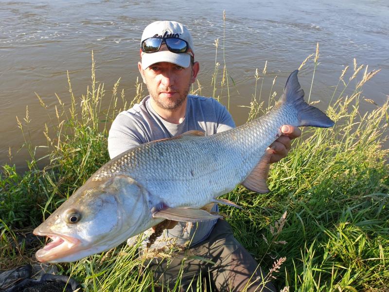 MGOR Opublikowano 17 Czerwca 2020 Zgłoś Udostępnij Opublikowano 17 Czerwca 2020 (edytowane) Rano nie było jakoś wyjątkowo. Raz na jakiś czas pojawił się boleń, co ostatnio zdarza im się coraz częściej. Wiedzieliśmy jednak, żę w tym miejscu są i żerują, bo kilka(naście) ryb już tam padło. Zabawa zaczęła się po godzinie wędkowania. Pierwszą rybę złowił Sebastian. Gumowa przynęta prowadzona w poprzek rynny dała rybę 70+. Chwilę później na mojej wędce zameldował się boleń, 60+. Chwila przerwy, nieśmiale pogonione uklejki kiknanaście metrów dalej i jest druga. Większa. Udało się wpłynąć w silniejszy nurt, ale na szczęście nie zanurkowała za przeszkody. Także 70+. Na zakończenie, po 15 może minutach, na wędce melduje się najmniejszy tego ranka boleń. Wszystkie ryby w dobrej kondycji wróciły do wody, bez śladów wędkarskiego obrządku. Wszsytkie też wzięły głębiej, nie na powierzchni, choc były aktywne. Mojemu największemu udało się pstryknąć kilka fotek. Są oczywiście mocno przerysowane, bo ryba wygląda jak kolos, ale mi się podobają Do zobaczenia nad wodą m. Wersję wideo tego krótkiego opowiadanka znajdziecie po tym linkiem:https://youtu.be/onNgmSXn57k Edytowane 17 Czerwca 2020 przez MGOR 17 Cytuj Odnośnik do komentarza Udostępnij na innych stronach Więcej opcji udostępniania...
