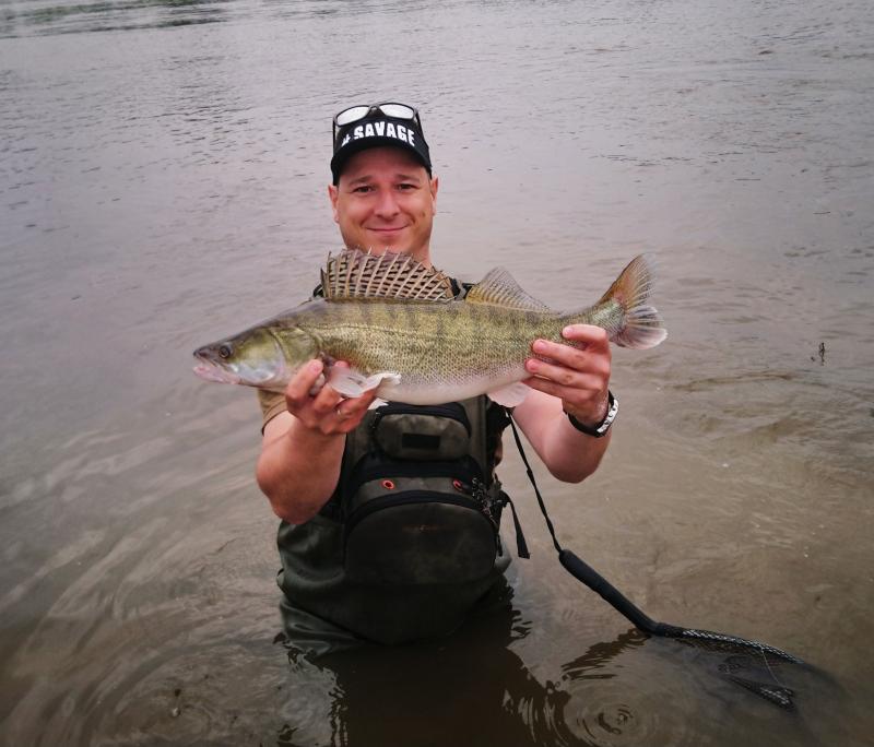 Dzisiaj nie chciały już współpracować, drobnicy też nie było widać, więc postanowiłem poszukać mętnookich na dedykowanego im woblera, było jedno ładne wyjście z 3-4 m ode mnie, po 5-7 rzutach poprawił (tak mi się wydaje, że to ten sam). W dobrej kondycji odpłynął cieszyć się życiem (szybkie wyhaczenie w podbieraku). Odcinek warszawski...