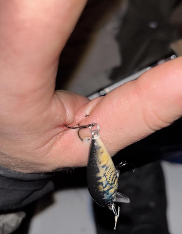 No i tak na zakończenie kleniowej sielanki zaaplikowałem sobie trzy groty z woblera w dłoń. Najgorsze, że na jednej kotwicy byłem ja, a na drugiej ryba (tez na trzech grotach). Także miałem jedną dłoń, żeby nas wyczepić.