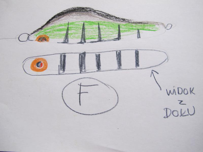 Ugly Opublikowano 27 Czerwca 2022 Zgłoś Udostępnij Opublikowano 27 Czerwca 2022 Będę się wymundrzał I tworzył teoryje. Jesli założymy że oko szczupaka działa jak obiektyw tzn na zasadzie detekcji fazowej to wszelkie paski winny być dokładnie pionowe. Wszelkie "oka" w połowie korpusu są do niczego bo celując w oko esoks bierze poprawkę na małe opóźnienie( czas skoku na ofiarę) by złapać ją wpół akurat. Poniżej trzy propozycje narysowane na kolanie jerk koniecznie pływający . zakładamy że szczupak patrzy w górę a więc paski i oko na brzuchu Ot com wydumałKolorek zielony bardziej fluo Jerk taki se. łuski żle sie nakleiły czerwonej dupki może nie być wobek, jerk tez może być Robert, ty turku jeden zamiast od razu do dziadka uderzać po ludziach ganiasz 1 Cytuj Odnośnik do komentarza Udostępnij na innych stronach Więcej opcji udostępniania...