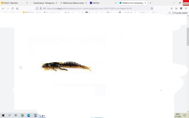 Karpiu95 Opublikowano 26 Października 2021 Zgłoś Udostępnij Opublikowano 26 Października 2021 Koledzy,Może ktoś zna przynętę z załączonej fotki. Sprawdziła sią na ostatnich połowach a niestety w pudełku przeleżała kilka lat i zapomniałem gdzie ją kupiłem oraz CO NAJWAŻNIEJSZE jaka jest jej nazwa. Oczywiście (los tak chciał...) została mi ostatnia sztuka, niesamowicie sfatygowana przez ryby. Jak widzicie jest to pewnego rodzaju raczek/larwa, która miała dwa ogonki zakończone poziomą płetwą. Ciemno brunatny kolor z brokatem. Na odwłoku poziome wypustki. Na zdjęciu brakuje jednego z odnóży, które zostało urwane przez ryby i kawałka płetwy na drugiej. Może jednak ktoś cokolwiek pomoże: firma, model, może gdzie jest jeszcze dostępna? Z góry dzięki za każdą podpowiedź.to jest breath bait U30 Bug Flap Cytuj Odnośnik do komentarza Udostępnij na innych stronach Więcej opcji udostępniania...