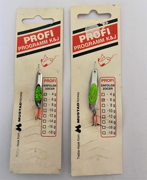 abudam Opublikowano 28 Września 2022 Zgłoś Udostępnij Opublikowano 28 Września 2022 WitamTe wykonane ze skośnie ciętego pręta okrągłego lub 6-ciokątnego pilkerki, przedstawione na poniższej fot. kupiłem w roku 2003 lub 2004 w Gdańsku.Oprócz tych przedstawionych na fot., które mają z jednej strony naklejkę holograficzną srebrno-perłową, a na drugiej stronie czerwoną, były jeszcze w kombinacji zielona i srebrno-perłowa.Kto był/jest producentem tych przynęt? DSC00077.JPG Witam, dziekujac wpierw za cenne informacje dot. producenta powyzszych przynet, chcial bym takze swoje "trzy grosze" do tematu dorzucic.W Niemczech dystrybutorem tych przynet byla berlinska firma Profi Programm K&J.W moim zbiorze posiadam rozne modele tych przynet o wadze od 4g do 12g Owe przynety cieszyly sie wielka popularnoscia w lowieniu spod lodu lub z lodki i byly produkowane takze poprzez inne firmy, np.: Luhr Jensen Pozdrawiam serdecznieMartin 1 Cytuj Odnośnik do komentarza Udostępnij na innych stronach Więcej opcji udostępniania...