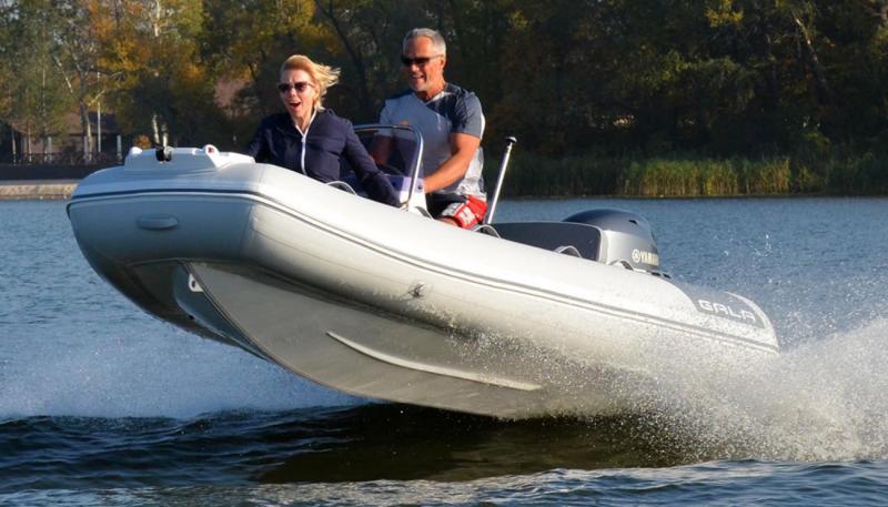 ( Rib angielski skrót od rigid-inflatable boat , sztywna pompowana łódź ) Hybryda pontonu z klasyczną łodzią ślizgową