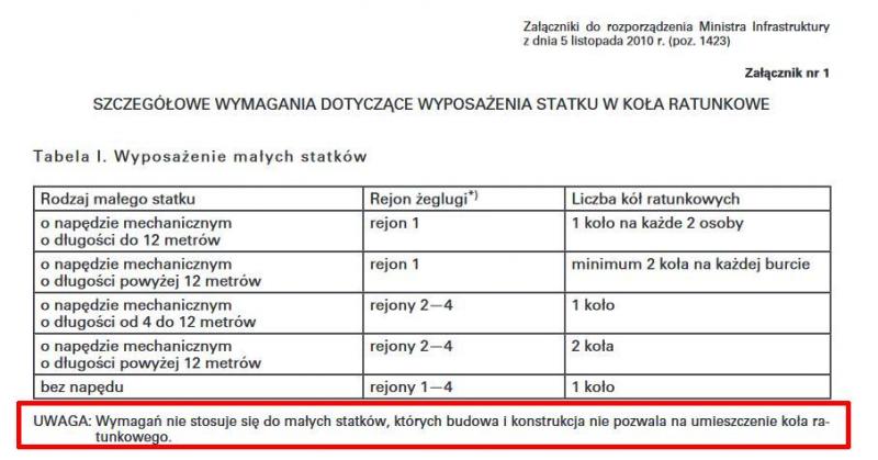 0 wuran Opublikowano 17 Marca 2020 Zgłoś Udostępnij Opublikowano 17 Marca 2020 (edytowane) nie każda łódka ma mozliwość umieszczenia koła, dlatego jest to zastrzeżenie. Gdzie ma być umieszczone koło,na burcie, pod nogami? poniżej zrzut z rozporządzenia, zacytowałerm całą uwagę po tabelką, nie wyrwałem nic z kontekstu a pokaż proszę gdzie są wymagania dla koła ratunkowego, czy koła mają być zgodne z SOLAS czy nie? jeśli nie to jakie wymagania i co jest podstawą prawną dla nich. Jeśli SOLAS to dlaczego akurat to, bo w rozporządzeniu nie ma wymogu SOLAS. SOLAS jest za to w innym ale dotyczącym statków morskich, a nasze są śródlądowe Edytowane 17 Marca 2020 przez wuran Cytuj Odnośnik do komentarza Udostępnij na innych stronach Więcej opcji udostępniania...