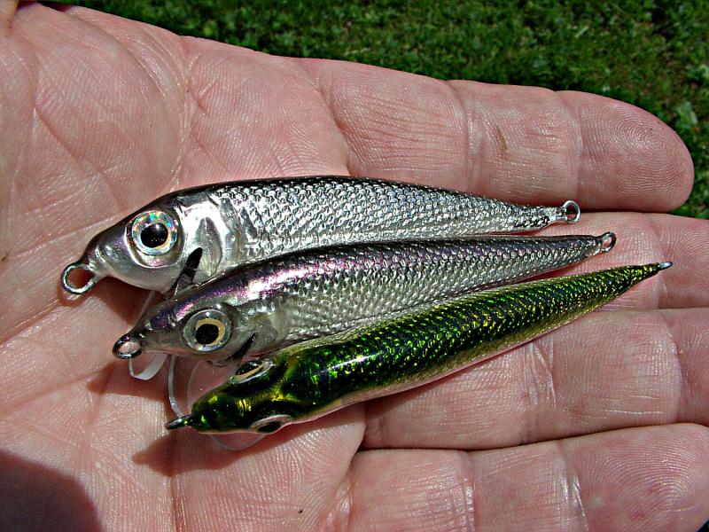 Pobawiłem się też z sandaczówkami 7 cm. Odchudziłem je. Straciły na lotności, zyskały na pracy. Jest drobniejsza, więcej lusterka, tak jak lubię. I znów nie nagrałem pracy przynęt, wiatr zmącił wodę i nic nie widać :(