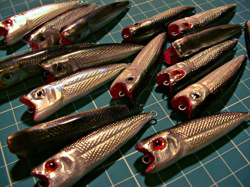 woblery z Bielska Opublikowano 16 Listopada 2014 Autor Zgłoś Udostępnij Opublikowano 16 Listopada 2014 Cóż...Milczę, bo nie jestem da końca zadowolony ze swoich dzieł. Można lepiej. Ale ręka wciąż mniej sprawna, niż pamiętam i ze szczegółami, no cóż, mam problem Poppery pionowego lądowania Baaardzo dalekiego zasięgu, choć pływające. Jakieś 6 cm. Waga 6,2 grama, folia ALU na balsie, 4 warstwy żywicy. Przy szarpnięciu cmokają, prowadzone w wolnym równym tempie - praca typu walk de dog, szybciej - zabierają pęcherz powietrza pod wodę i gubią go w formie drobniutkiego spraju. Bardzo podobnie jak w mniejszym modelu, tylko "bardziej" Opalizacja zielona, niebieska i bez opalizacji. 16 Cytuj Odnośnik do komentarza Udostępnij na innych stronach Więcej opcji udostępniania...