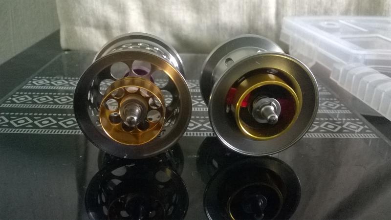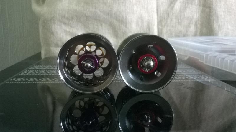 PablovelLoco Opublikowano 29 Czerwca 2016 Zgłoś Udostępnij Opublikowano 29 Czerwca 2016 TD-Sol po modernizacji: łożyska Katobi BFS,karbonowa korbka 90mm,knoby oraz ciekawoska... chińska szpulka finesse Ray's Studio dedykowana do serii Alphas.Szpulka wykonana jak najbardziej precyzyjnie,kręci eleganco bez bicia i itp.,posiada dołożone orginalnie łożysko hybrydowe a'la ''jeżyk'' BFS,dedykowana waga 8,9g (moja niezbyt dokładna waga leciutko oszukuje),na zdjęciach do prównania z orginalną głęboką szpulą z łożyskiem BFS. 8 Cytuj Odnośnik do komentarza Udostępnij na innych stronach Więcej opcji udostępniania...