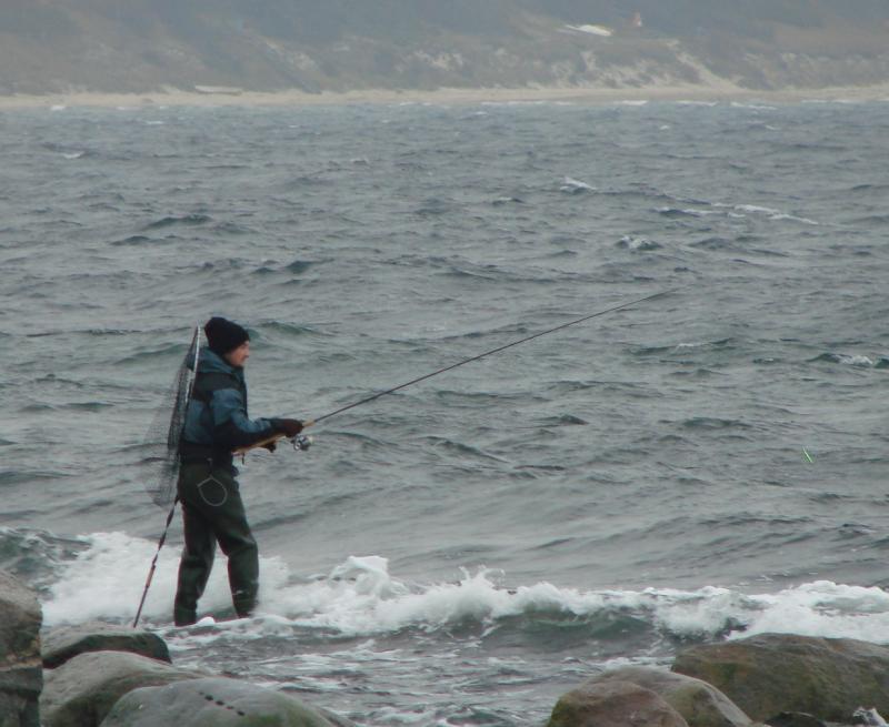 Jakiś miesiąc temu byłem na Bornholmie i łażąc po plaży z aparatem zrobiłem fotkę tamtejszemu wędkarzowi: