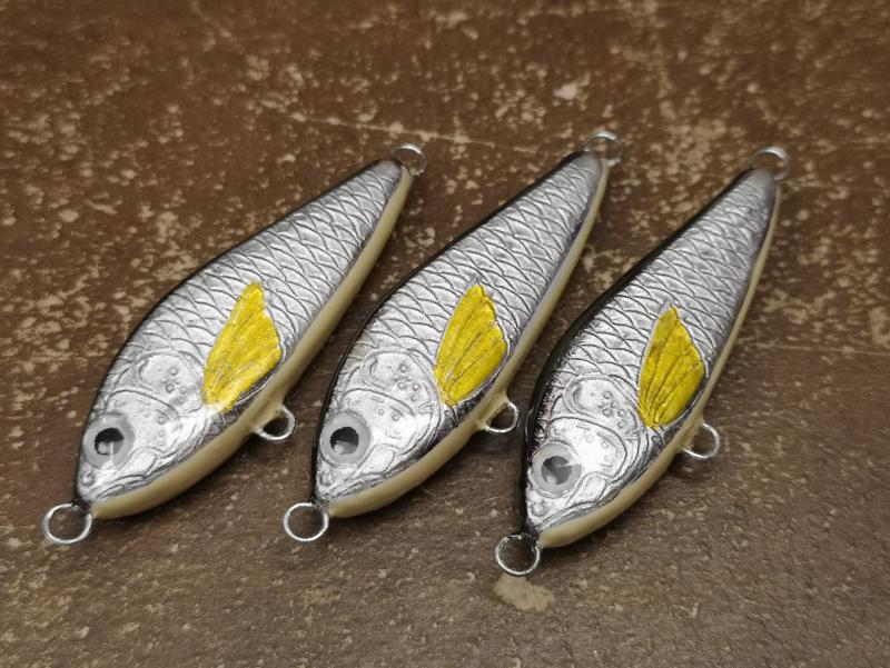 Drugi z mikro jerków, które stworzyłem w ubiegłym roku, podczas prowadzenia przypomina małą spanikowaną rybkę. Podobnie do SLAPA łowił skutecznie okonie, klenie, ale budził też często zainteresowanie boleni, miałem przetestować go w tym roku na tych ostatnich, jednak zabrakło czasu, złowił dotychczas u mnie dwa niewielkie osobniki. Na dostępnych egzemplarzach sprawdzałem markery do deseni fluo. Jak poprzednie, również bardzo lotny i opadający drobniutkim lusterkiem.