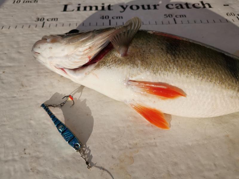 TERMOS Opublikowano 13 Grudnia 2020 Zgłoś Udostępnij Opublikowano 13 Grudnia 2020 (edytowane) 13 grudzien zimy brak, moze w styczniu a kto to wie. Poki co pragne przedstawic Estonski patent ktory nabylem do kolekcji. Model wyglada bardzo specyficznie, przypominam wielka mormycha w krztalcie siekierki. Czepia sie to na zylce a powyzej podlodowe haki na sledzie w kolorze czerwonym(opcjonalnie male gumki) .Taki zestaw lowi w Estoni okonie. Nie jest to metoda popolarna ale ma swoich zwolennikow za wschodnia granica. Pieknie wypolerowany klin swista na boki i wabi blyskiem. Skoteczne,zabujcze chos sam nie zdazylem przetestowac. Podlodowka original u Nas pan takiej nie uswiadczysz. Piekny kawal blachy w Mojej gablocie.(foto po prawej) Edytowane 13 Grudnia 2020 przez TERMOS Cytuj Odnośnik do komentarza Udostępnij na innych stronach Więcej opcji udostępniania...