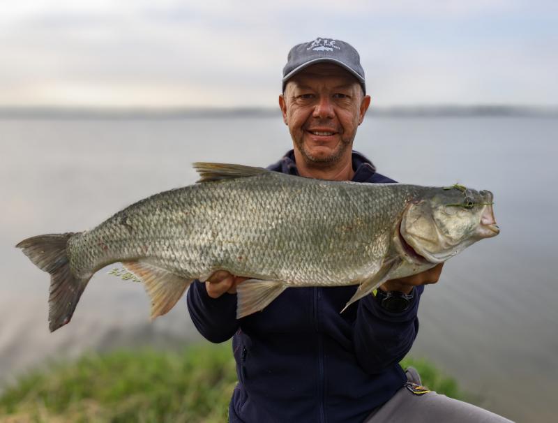 DK1969 Opublikowano 18 Lipca Zgłoś Udostępnij Opublikowano 18 Lipca (edytowane) Dunajec poniżej Czchowa, polowanie na brzany. Przepiękne miejsce, wlew, rynna i na końcu wyplycenie. W środku wyspa. Upał, przez 3 godziny ani jednego spławu ryby. Cisza absolutna.Żar się leje z nieba, mam dość. Już pakuje sprzęt na brzegu. Nagle potężne uderzenie przy drugim brzegu, na spojonej, płytkiej wodzie. Odruchowy rzut woblerem brzanowym dokładnie w to miejsce.Dorado Invader 6 cm tylko dotknął wody, obrót korbką i jest. Siedzi. Spokojny hol i Bolen 71 cm melduje się na brzegu. Błyskawicznie wypięty, odpływa w doskonałej kondycji. Edytowane 18 Lipca przez DK1969 21 Cytuj Odnośnik do komentarza Udostępnij na innych stronach Więcej opcji udostępniania...