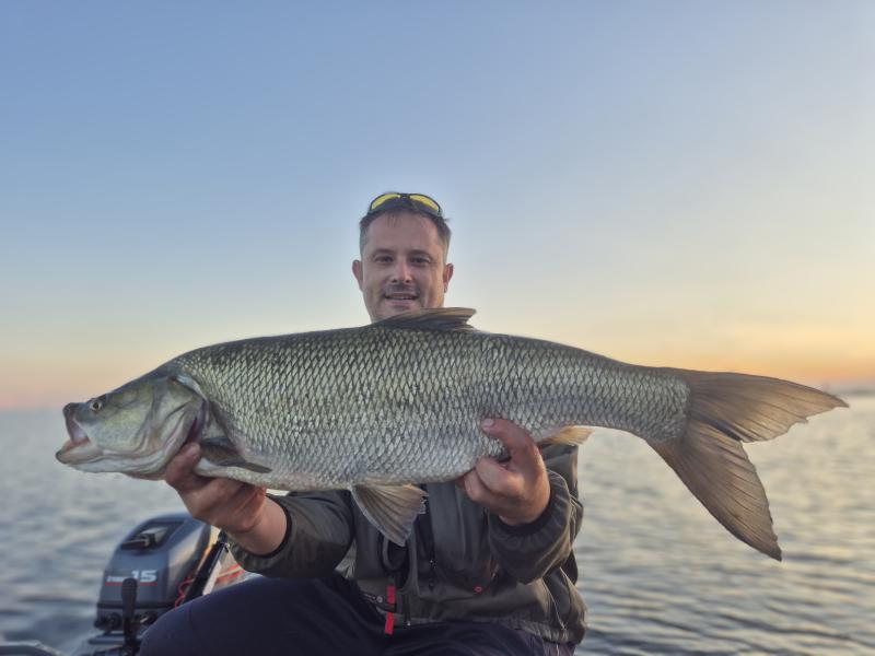 Piotr Gołąb Opublikowano 26 Lipca Zgłoś Udostępnij Opublikowano 26 Lipca Ten rok nie rozpieszcza boleniowo i choć kilka fajnych ryb "wpadło" od maja to ciężko było o prawdziwego klamota. Wyprawa szybka, bardziej w ramach sprawdzenia co w trawie piszczy. Kiedy montuję zestaw obserwuję prawdziwy boleniowy balet. Zapinam na agrafkę wobka własnej produkcji. Po kilku rzutach branie wyrywające z butów kilka metrów od brzegu. Ryba kilka minut krąży nerwowo w toni nie pozwalając się zobaczyć. W końcu się wynurzył pokazując japę niczym małe wiaderko, zaczepiony za dosłownie jeden grot kotwicy .Jeszcze kilka kotłów i jest w podbieraku. Miarka pokazuje 83 centymetry, póki co największy w tym roku ???? . 40 Cytuj Odnośnik do komentarza Udostępnij na innych stronach Więcej opcji udostępniania...