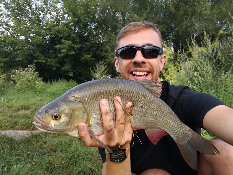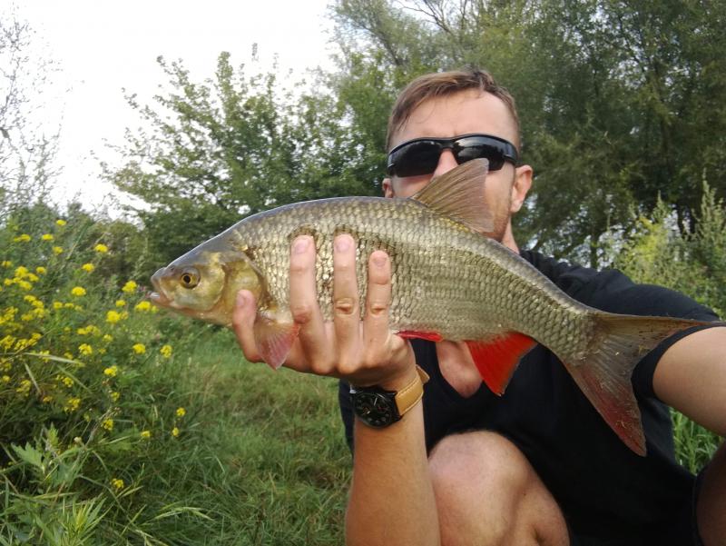 Robert91 Opublikowano 8 Sierpnia 2018 Zgłoś Udostępnij Opublikowano 8 Sierpnia 2018 Dziś miałem w planie popołudniowy wypad na W3 w okolicach Nowego Brzeska. Chciałem jakieś trzy - cztery godziny połowić z gruntu w sporej zatoce, potem gdy zacznie się ściemniać miałem zamiar spinningować za kleniem na 200 metrowym odcinku opaski poniżej tej zatoki. Ewentualnie obłowić krótki kawałek opaski tuż przed samą zatoką. Po mało przyjemnej, prawie kilometrowej przeprawie przez chaszcze z dwoma spinningami, wiaderkiem z zanętą i pokrowcem z gruntówkami dotarłem na miejsce. Niestety nie dane mi było połowić z gruntu tego dnia. Okazało się, że właśnie trwała w najlepsze wywózka i montaż sumowych zrywek z żywcami z drugiego brzegu, w zatokę która była moim celem. Trochę zrezygnowany zabrałem tylko lekki spinning i poszedłem szukać kleni trzy godziny wcześniej niż zakładał plan. Spokojnie obłowiłem 50 metrowy odcinek, przyplątały się krótkie klenie i okoń. Podczas kolejnego spławiania z nurtem owadopodobnego wobka zaobserwowałem, że powoli w moją stronę kieruje się ławica uklei. Na tym odcinku jest tak, że ukleje płyną przy samym brzegu opaski od ujścia małego cieku aż do zatoki, po czym zawracają w zatoce i z nurtem spływają w dół. W sumie taką trasę robią kilka razy dziennie, za każdym razem pilnują ich okoliczne bolki. Wiedziałem, że zaraz jakiś boleń zacznie je ścigać więc założyłem boleniowego wobleraa 4cm długości, który najbardziej odpowiadał rozmiarowi ryb w tej ławicy. Pierwszy rzut, kilka obrotów i bardzo agresywny atak, ukleje latały w powietrzu. Boleń co prawda nieduży, około 60 cm, ale rabanu narobił podczas holu strasznego i drobnica gdzieś zniknęła. Doszedłem do wniosku, że nie chce mi się czekać ponad dwie godziny aż skwar się skończy i woda ożyje i postanowiłem zrezygnować na dziś, za to jutro pojawić się o świcie. Wracając zatrzymałem się na chwilę trochę wyżej, w miejscu gdzie główny nurt odbija się od opaski i kieruje na środek rzeki. Na smużaki nie było efektu. Założyłem małego ale dość głęboko schodzącego woblera bonito i w trzecim rzucie poczułem lekkie skubnięcie. Po zacięciu pojawił się zdecydowany opór i przez chwilę myślałem, że trafiłem jakiegoś niedużego suma, których sporo na tym odcinku. Jednak po mniej niż minucie ryba zaczęła się poddawać więc wiedziałem, że to jednak ładny kleń. Jak się okazało miał 52 cm, więc mój skromny kleniowy PB z tamtego roku został wyrównany, ale nadal nie trafiłem jednego z profesorów jakie tu pływają. Myślę jednak, że to kwestia czasu 9 Cytuj Odnośnik do komentarza Udostępnij na innych stronach Więcej opcji udostępniania...