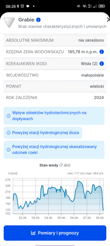 PePe. Opublikowano 8 Czerwca Zgłoś Udostępnij Opublikowano 8 Czerwca Koło południa na Grabiu będzie znowu ponad 200cm i tak w kółko, człowiek nie wie gdzie jechać na ryby i jaki stan wody zastania bo wahania 80-90 cm zmienia mety diametralnie Cytuj Odnośnik do komentarza Udostępnij na innych stronach Więcej opcji udostępniania...