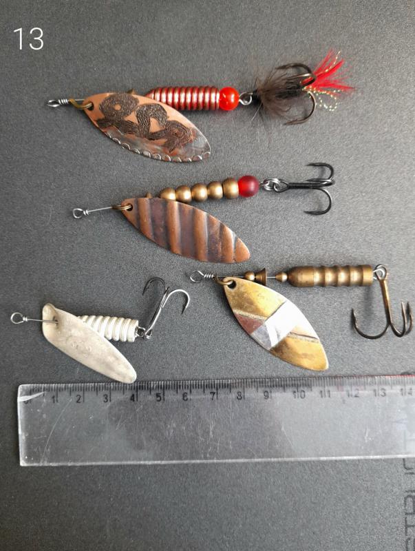 Cyprek Opublikowano 20 Września Zgłoś Udostępnij Opublikowano 20 Września Uwaga, uwaga! "Rozprzedaż" kolekcji, czy bardziej zbiorów. Z racji zbierania na nowe młynki wystawiam nieco przynęt. Sporo z nich to bardzo ciekawe wabiki, głównie z Francji. 1) Elbe "Torsk" - klasyka gatunku jeśli chodzi o połowy morskie. Prosta wahadłówka dociążana ołowiem. Bardzo skuteczna, co pozwoliło jej uzyskać starus przynęty niemalże kultowej. Cena za sztukę - 20 zł 2) Obrotówki trociowa, Kaszubka.Za nią 15 zł 3) Dwie klepanki boleniowe - 10 zł za obie 4) Francuski Spinnex i polski Sumex. Do kolekcji jak znalazł, ale jak dla mnie to świetne przynęty szczupakowe.Zestaw za 25 zł 5) Bardzo stare obrotówki Voblex. Genialna przynęta na szczupaka, okonia. Obecnie nien nie do zdobycia. Zwłaszcza z oryginalnymi dociążnikami - z racji ich braku za komplet chciałbym 70 zł 6) Le Tourbillon Th. JOLY i Pezon&Michel Luxor Rafal - obie bardzo stare i dosyć rzadkie. Komplet 40 zł 7) Dwie obrotówki w stylu Dewara, a może i Dewary bez napisów. Za obie 10 zł przez wzgląd ma stan 8) Misz-masz obrotówek- 15 zł 9) Zestaw Le Tourbillon Th. JOLY - jak już pisałem wyżej. Dosyć rzadkie ciekawe przynęty. U Nas bardzo trudne do znalezienia.Całość 100 zł 10) 3 blaszki - Terrible Deposee, Abu Droppen i blacha chyba rodem z NRD. Za wszystkie 40 zł 11) Dwa stare woblery w widocznym stanie - czyjaś amatorska praca, co nie znaczy, że nie mają łowić po poświęceniu im odrobiny pracy. Za oba 10 zł 12) Dwie wahadłówki - Kalewa od Czapli i wahadło radzieckie - za obie 8 zł 13) Ciężkie obrotówki na trocie - piękna ręczna robota - za nie chciałbym 45 zł 14) Bardzo stara przynęta typu minnow - 15 zł 15) Mini wahadłówki, głównie Kastmaster - całość 50 zł Odnośnik do komentarza Udostępnij na innych stronach Więcej opcji udostępniania...
