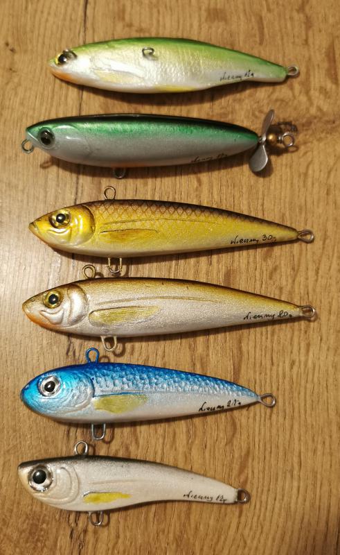 Szprota 30g, szprota 20g, Pyszczak 21g,Igła 12g, Śmigło 17g,i taka martwa rybka 12g.