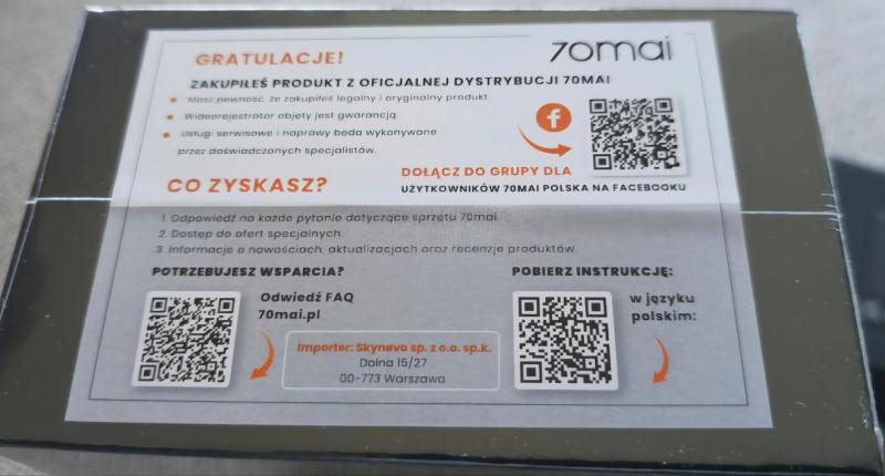 bartekmaj Opublikowano 4 Października Zgłoś Udostępnij Opublikowano 4 Października Sprzedam nowy wideorejestrator - zestaw 70mai 4K Omni (X800) Dual Cloud Set Idealny sprzęt do auta wędkarza który pozostawia swój sprzęt ( auto, łódź, przyczepę ) na brzegu i chce mieć to pod kontrolą. Można regulować kąt obrotu kamery przedniej 360°. Można ustawić widok nagrywania np na łódź lub przyczepę. Zestaw taki kosztuje ok 2200 pln. Mój jest nowy. Wyjęty tylko z pudełka do zdjęć. Nie mam paragonu bo to prezent którego raczej nie zastosuję ( mam już inna kamerkę w aucie ). Poniżej opis sprzętu. https://www.wideorejestratory24.pl/zestaw-70mai-x800-dual-70mai-256gb-cloud-set Cena 950 pln.Możliwy odbiór w Warszawie Odnośnik do komentarza Udostępnij na innych stronach Więcej opcji udostępniania...