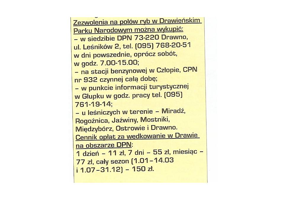 Chłopaki potrzebuję pomocy. Chce się wybrac jutro na fishe na Drawe, na odcinek parkowy, niestety nie moge sie nigdzie doszukac numer konta Drawieńskiego Parku Narodowego... może ma ktoś po reka i wie ile trzeba wplacic za dniowke???