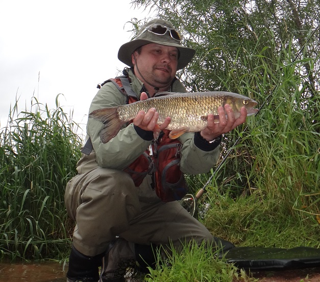 bielik Opublikowano 17 Sierpnia 2013 Zgłoś Udostępnij Opublikowano 17 Sierpnia 2013 Dzisiaj wyskoczyłem na rybki z nadzieją że może uda się powtórzyć sukces z czwartku. I już w 3 rzucie udało się. Kleń wziął bardzo agresywnie połknął woblera bardzo głęboko a na dodatek jak wyhaczałem to pluł chlebek czyli jednym słowem mocno żerował. Co mnie bardzo zdziwiło gdy go holowałem koło niego pływały jeszcze 2 klanie jeden taki sam a drugi potężny myślę że około 50cm miał i wgl się nie bały się pod sam brzeg z nim pływały dopiero gdy wystawiłem rękę by podebrać rybę uciekły. Ostatnio miałem dwa piękne brania odrazu po wpadnięciu woblera do wody? Kiedy należy to zacinać bo gdy widzę plusk koło mojego woblera instynktownie odrazu tne! Ale niestety bez skutku a czasami nawet nie zdążę kabłonka zamknąć!Ps Bielik wielkie dzięki za woblerki ten klenik to na twoje wobka!I radość z 2 ryby w tym sezonie powyżej 40cm!Gratulacje klenik ten cieszy nie tylko ciebie :-) mnie rowniez.... mowilem ze trafia sie kluski :-) zycze ci takiej jaka trafil Gugcio-(gratulacje ;-) .... ) 1 Cytuj Odnośnik do komentarza Udostępnij na innych stronach Więcej opcji udostępniania...