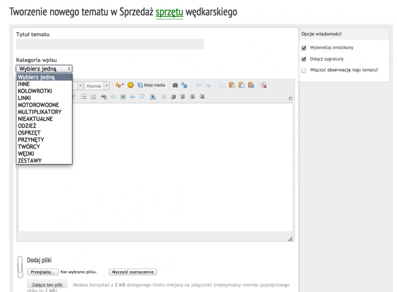 Tapatalk nie umożliwia wyboru kategorii.