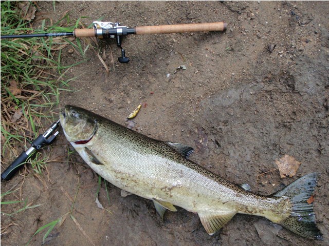 Darecki72 Opublikowano 3 Października 2010 Zgłoś Udostępnij Opublikowano 3 Października 2010 Wybralem sie dzisiaj na Milwaukee River zeby sprawdzic co tam w rzece plywa . Z powodow bardziej przyziemnych (tlumacz-rodzinnych)mialem ograniczony czas pobytu nad woda i w sumie lowilem tylko przez 2,5 godziny zaczynajac wczesnym rankiem. Lososie w rzece sa chociaz nie tak duzo i nie tak aktywne jak by sie chcialo. Udalo mi sie zlowic metoda muchowa dwie samice. Mysle ze ten prawdziwy Run dopiero przed nami, przydalo by sie troche deszczu to zaczelo by sie na dobre... Cytuj Odnośnik do komentarza Udostępnij na innych stronach Więcej opcji udostępniania...