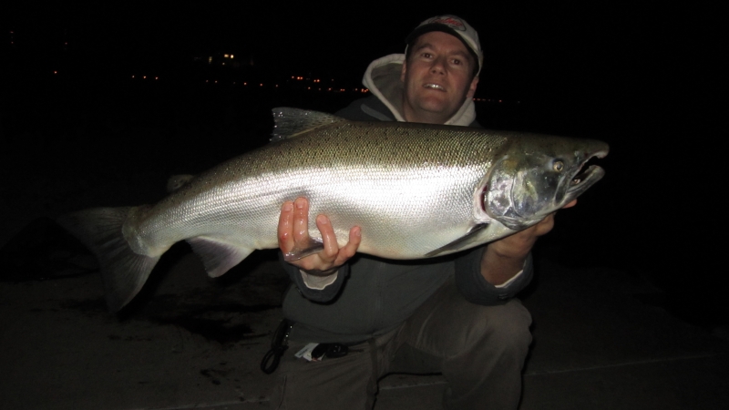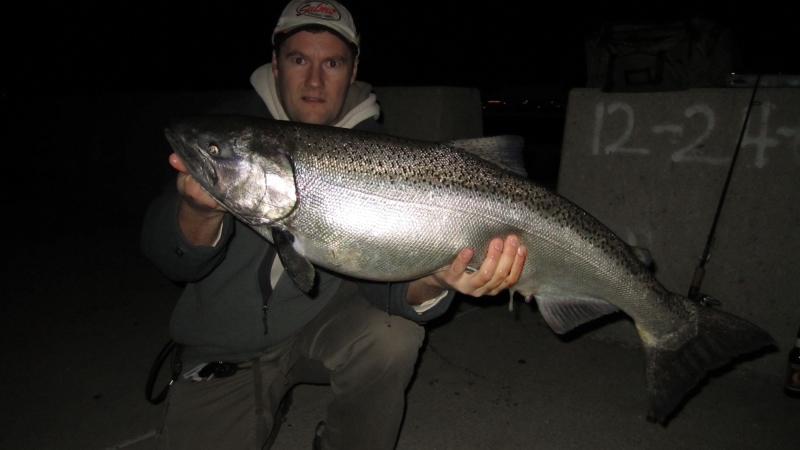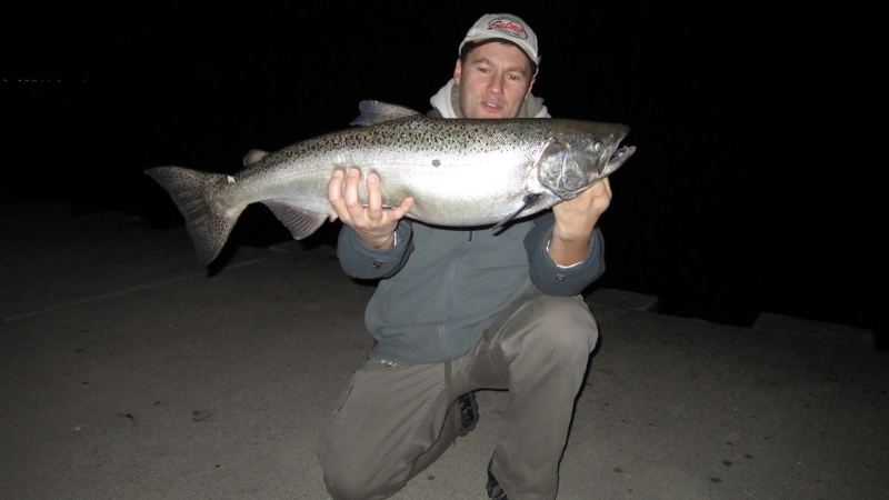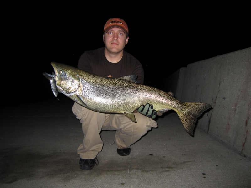 pogoda nie sprzyjala lowieniu lososi z brzegow jeziora Michigan, bylo doslownie kilka dobrych dni tego lata. Obecnie przy brzegu plywaja lososie czekajac na solidny deszcze zeby wejsc do rzek i odbyc talo. Jednak kilka dni temu powial zachodni wiatr i pozwolil nam zlowic rowniez kilka srebrniakow.na zdjeciach kolejno 13lb, 12lb, 15lb(coho) i 17lb i 18lb king salmon.