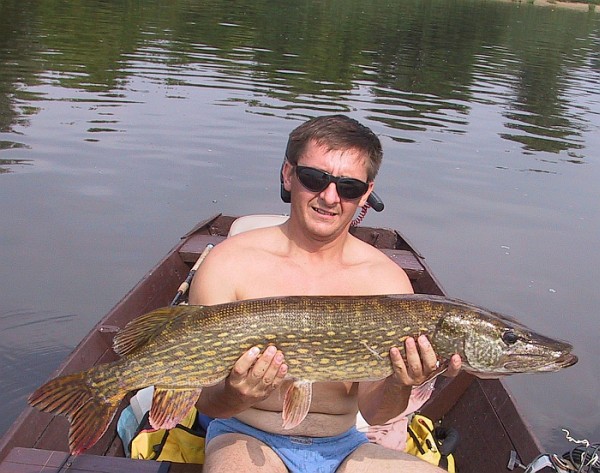 Gumofilc Opublikowano 15 Sierpnia 2007 Zgłoś Udostępnij Opublikowano 15 Sierpnia 2007 Trafil mi sie chyba jeden z, niestety, ostatnich prawdziwych szczupakow z Narwi.Pomiar wykazal niedobor 4cm do magicznej dlugosci.Ryba byla wyjatkowo w dobrej kondycji i wsciekla, zoatawiajac w kilku miejscach slady na mnie podczas oblucji w lodce i podczas wypuszczania.Bo zostala wypuszczona, podobnie jak wszystkie ryby lowione przez nas w Polsce. Gumo Cytuj Odnośnik do komentarza Udostępnij na innych stronach Więcej opcji udostępniania...