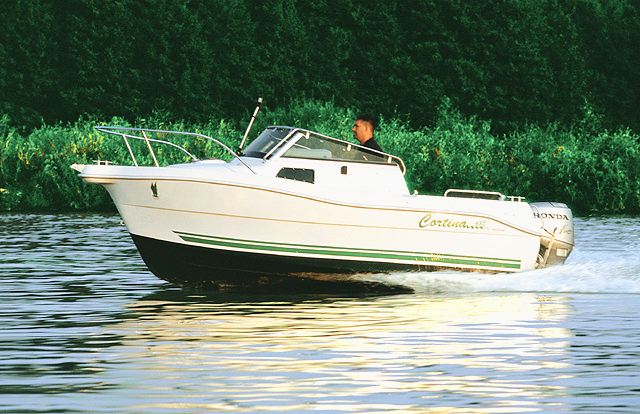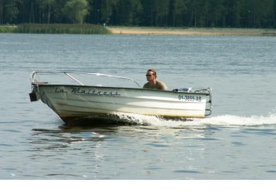 Wcześniej posiadałem typową irlandzką łódkę - szklaka , 19 stóp długości, z silnikami najpierw hondy 5hp (pomyłka przy tak dużej łodzi) a póżniej yamahy 9,9 (oba były 4suwowe). Łodka dobra do łowienia na muchę - bardzo powoli dryfowałą na wietrze, dodatkowo dosyć dzielna na wzburzonych wodach - z Ramayem wychodziliśmy przy wietrze dochodzącym do 60km/h (tak przynajmniej podawał serwis meteo) i.... udawało sie wrócić. Jednak całkowity brak wygód, oraz niedostosowanie do potrzeb łowienia szczupaków (brak siedzeń, wysokie burty, mała stabilność boczna) spowodowały że pożegnałem się z tą łodzią i zacząłem szukać czegoś innego.