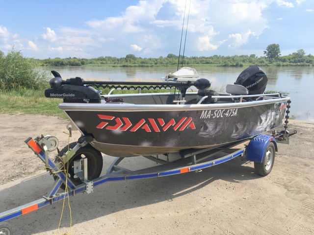 W zestawie 2x aku: 100Ah do silnika elektrycznego i 60Ah do rozruchu spalinowego i echosondy.