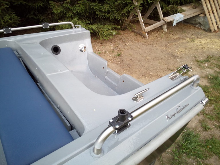 Na naszą prośbę producent dodał bakistę po lewej stronie - pomiędzy widoczną komorą wypornościową a środkową ławką - bakistą).