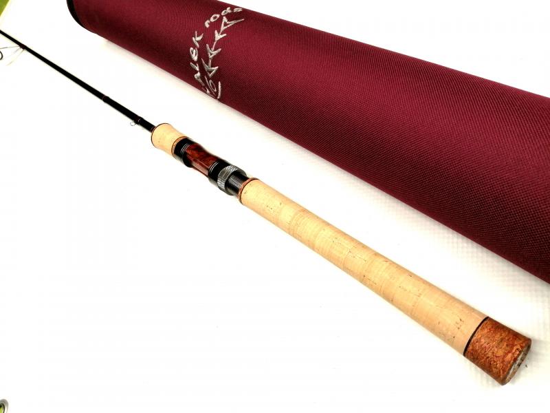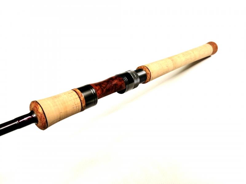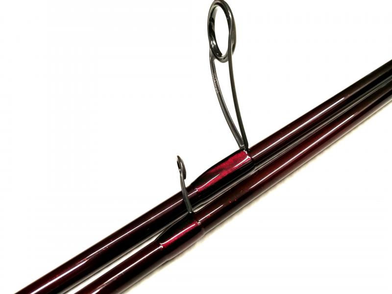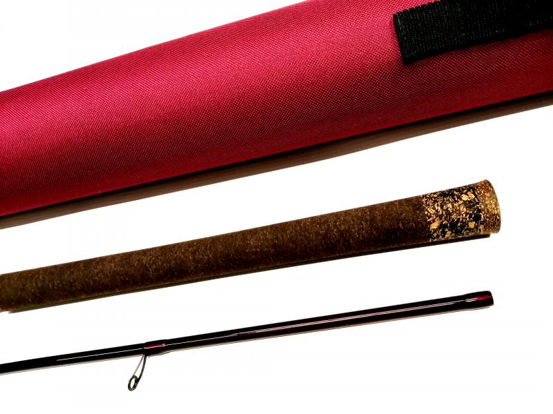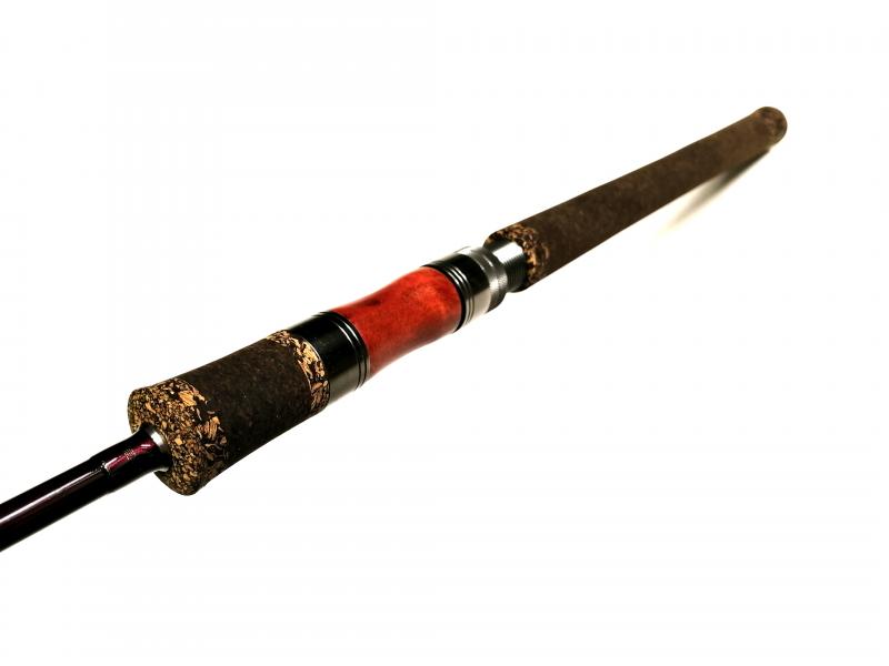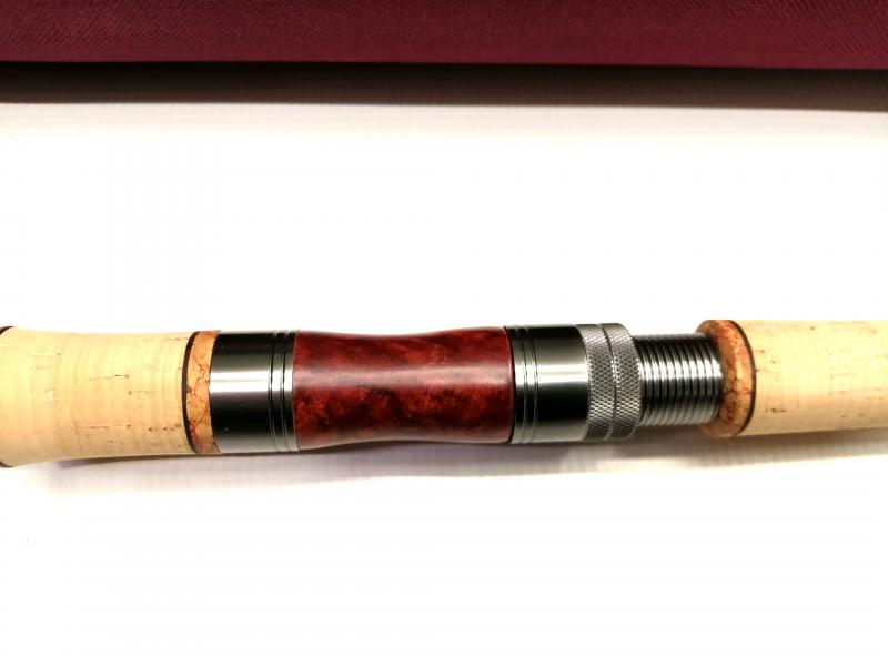 Blank został polakierowany w transparentny kolor Burgundy dust . Kijek dostał uchwyt BRS 11-229 G z pięknym, nietypowym drewnem w kolorze blanku, rękojeść z korka flor z dodatkiem elementów w kolorze całego projektu. Całość dopełniają lekkie przelotki Fuji Titanium Sic .