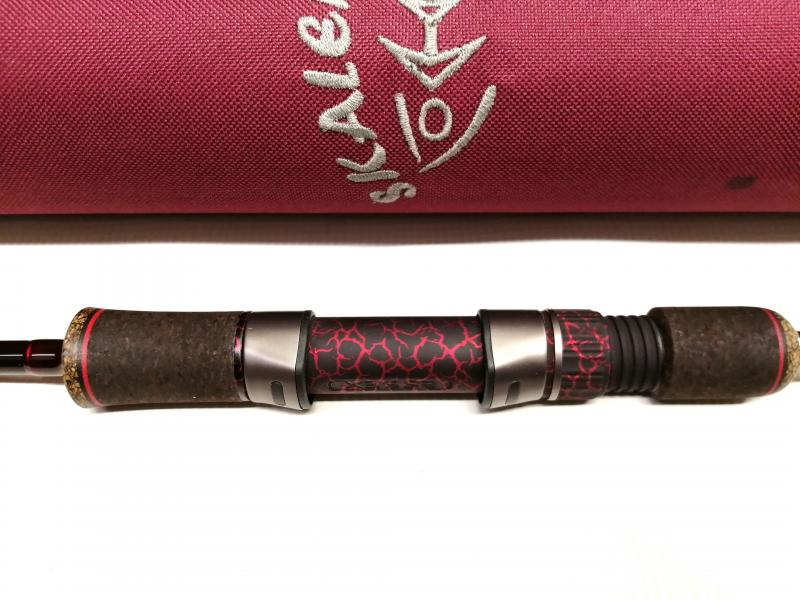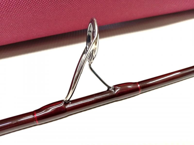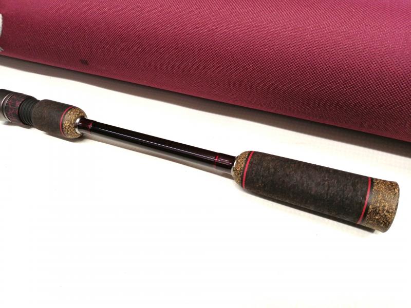 Ten egzemplarz dostał dzieloną rękojeść z korka burnt , wstawki z czerwonej pianki i korkogumy, uchwyt Essex red cracked, przelotki Fuji Sic Slim. Omotki  burgundowe, w kolorze blanku .