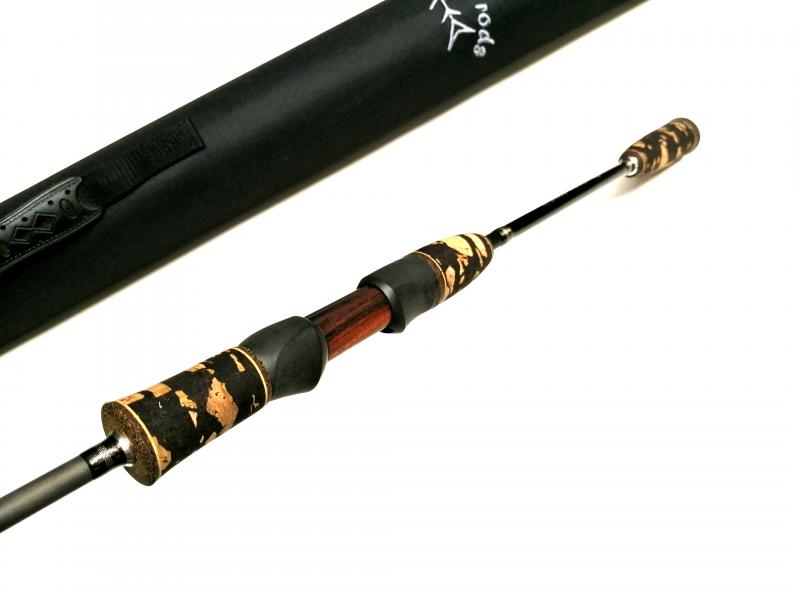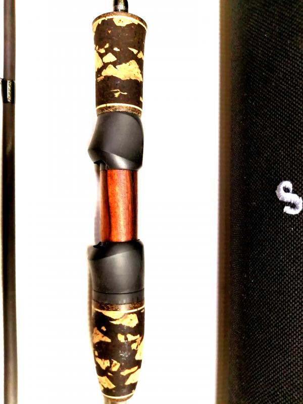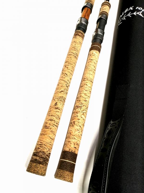 Kijek dostał dzieloną rękojeść z nowego korka copano mix ciemny, uchwyt Fuji KSKSS 16 z zabudowaną nakrętką, insert z drewna egzotycznego. Całość dopełniają lekkie tytanowe przelotki Fuji Titanium Sic.