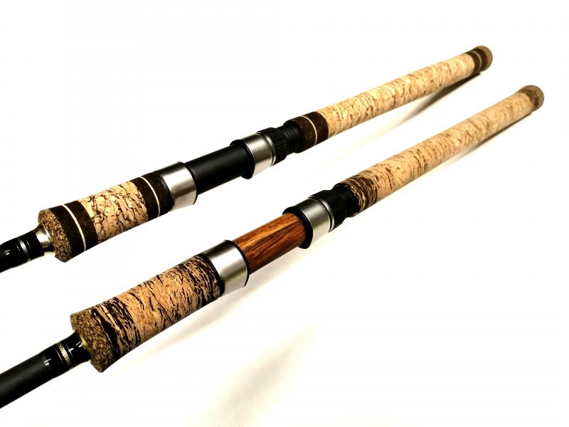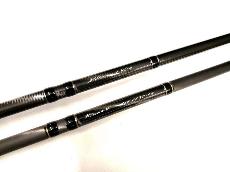Jedna na blanku MHX-L-904, druga na Blaas F - SLF7630-1N. Obydwa kijki w jednym kawałku długości 2,3m. Mocne spiningowe kijki pod większe gumy i jerki. Blaas nie co mocniejszy i sztywniejszy z delikatniejszym szczytem, MHX bardziej plastyczny , wolniejszy z mocniejszą szczytówką i głębszym ugięciem. Obydwa fajne ale różnią się między sobą znacznie.