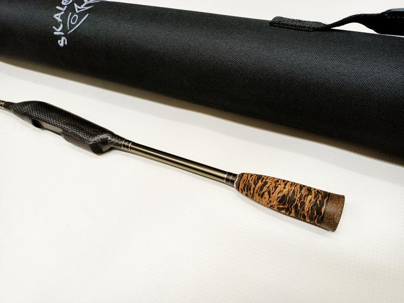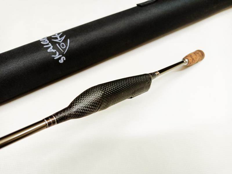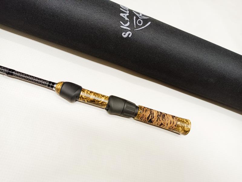 skalek-77 Opublikowano 2 Lutego 2022 Autor Zgłoś Udostępnij Opublikowano 2 Lutego 2022 OKONIÓWKA NA PŁYWADEŁKOKijek zbudowany z myślą o wygodnym łowieniu okoni z pływadełka typu belly boat. Kijek powstał na kapitalnym blanku dwu częściowym Noctiss Nano SNT645-2N. Kijkek mega szybki i elektryczny z subtelną ale nie flakowatą szczytówką. Idealny pod jiga. Kijek opisany jako 5lb mocy i do 6g . W/g mnie jest minimalnie mocniejszy niż opis wskazuje i poradzi sobie z główkami 7g + gumka 3", z tym , że ze względu na subtelna szczytówką już fajnie będzie się łowiło z główką 1,5-2gKijek dostał bardzo krótką rękojeść z korka kaktus i drewienka stabilizowanego, uchwyt Fuji SKSS 16 z insertem z tego samego drewna + przelotki Fuji Torzite. 15 Cytuj Odnośnik do komentarza Udostępnij na innych stronach Więcej opcji udostępniania...