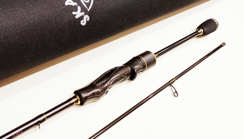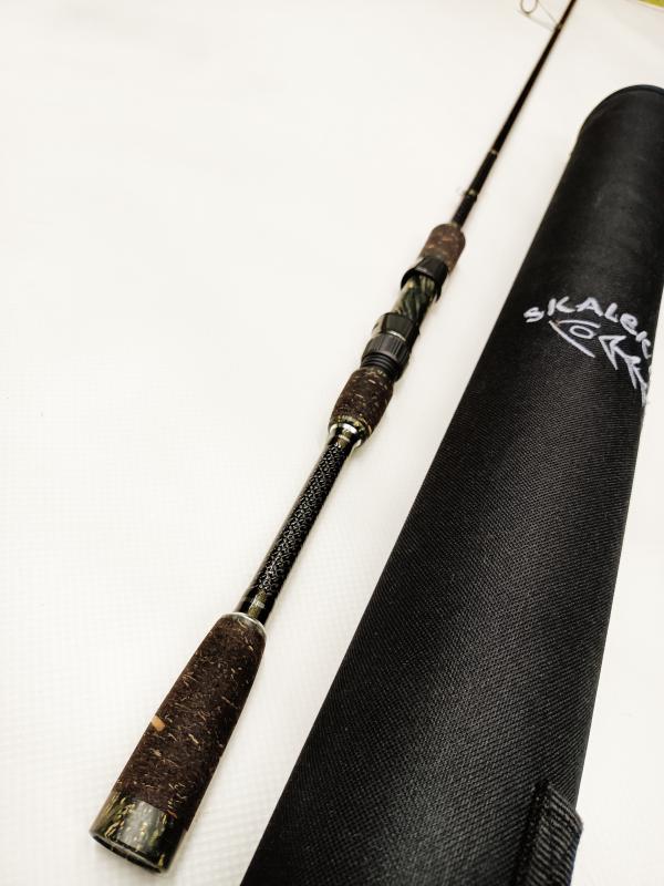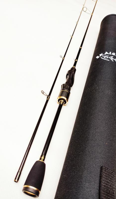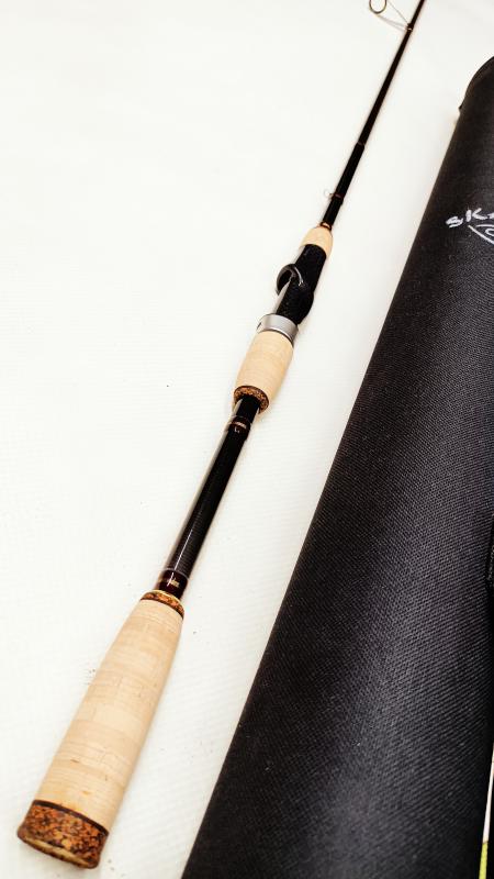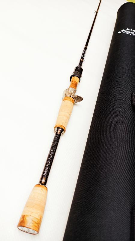 Kijek na blanku Suzuki RXF-6lb-702 zbudowany pod pstrągi i okonie. Kijek dwu składowy o długości 2,13m, moc 8lb, c.w 2-7g ( realnie do 10g). Fajnie sprawdza się przy przynętach twardych typu woblerek czy obrotówka, gumki na główkach 3-8g równie dobrze obsłuży. Kijek dość szybki o głębszym ugięciu, świetnie trzymający rybę na haku.