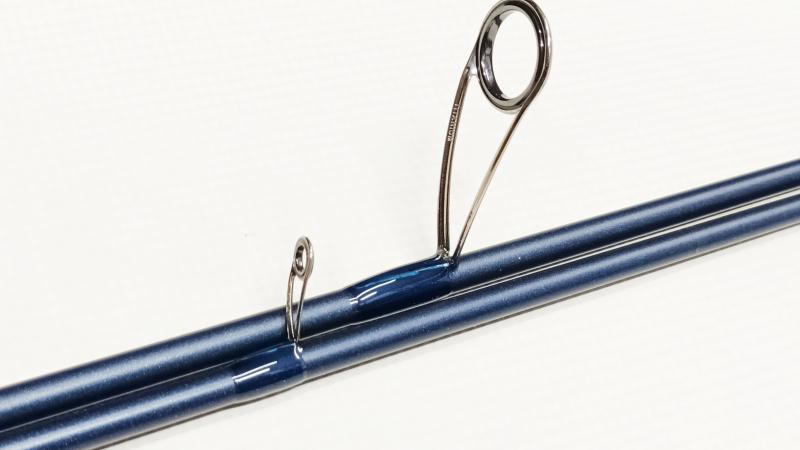 Kijek uzbrojony w rękojeść dzieloną z pianki Matagi, uchwyt Fuji TVS TK z nakrętką zabudowana pianką. Przelotki Fuji Torzite T2.